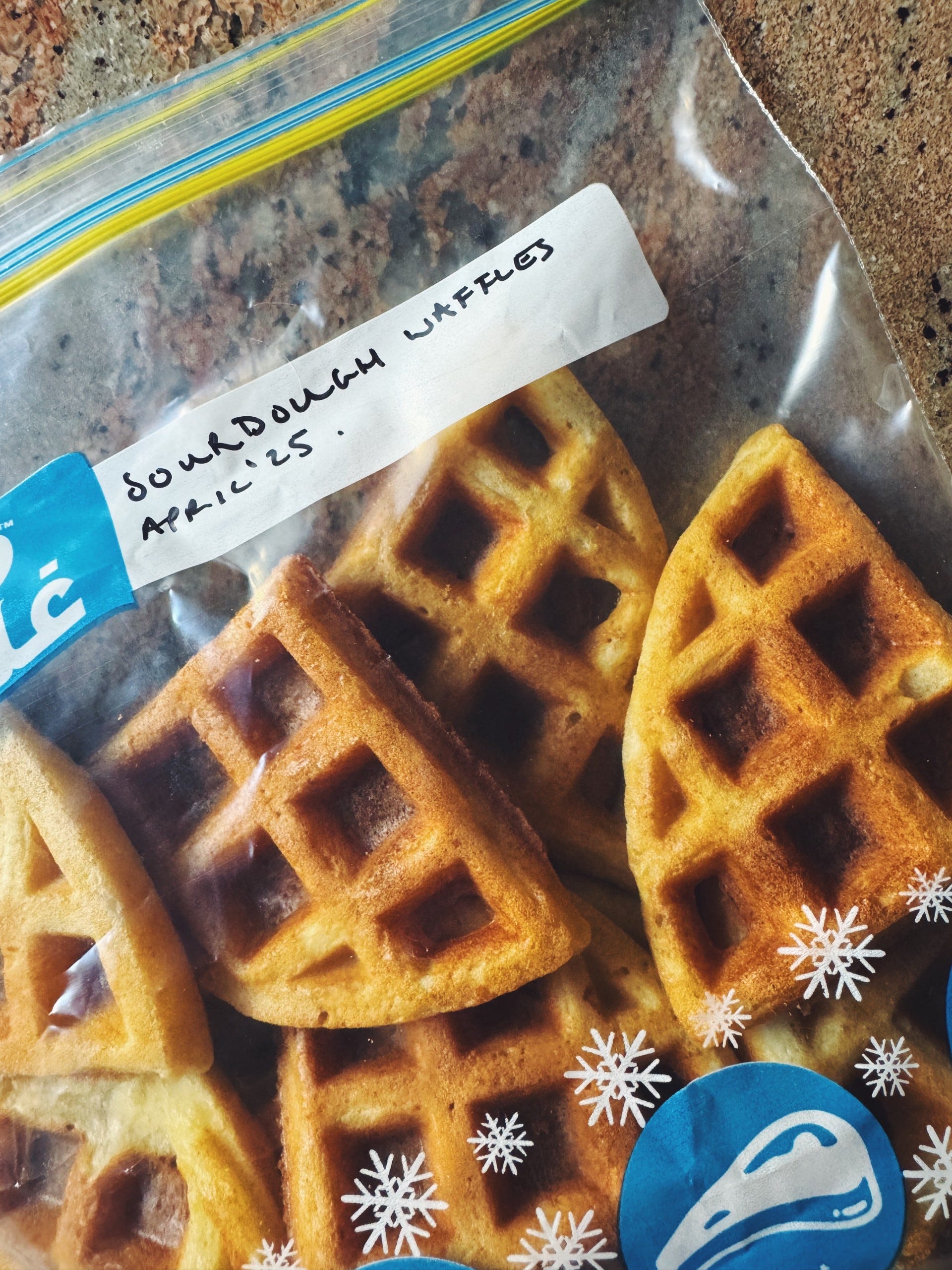 Things come and go in freezer land – at the moment I’ve got a supply of sourdough waffles that I reheat in the toaster for snacks or breakfast. Sometimes I have a chicken pie in there, sometimes meatballs, sometimes ratatouille or homemade fish goujons, but here are some things I always have in my freezer: